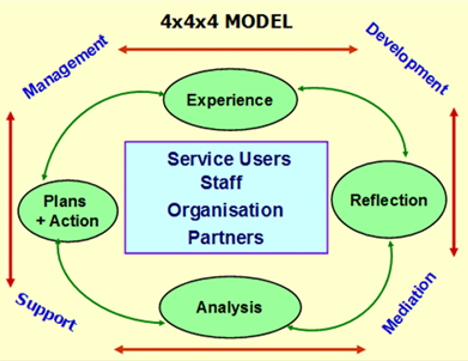 This policy, procedure and guidance draws on the work of Tony Morrison and his publication - 'Staff Supervision in Social Care' (2005) - and endorses the approach using the Kolb Experiential Learning Cycle (adapted by Morrison, 2005) often referred to as the 4x4x4 supervision model.