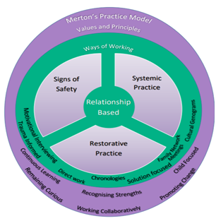 - Merton's Relationship based practice model, utilising the Signs of Safety model for supervision and learning.